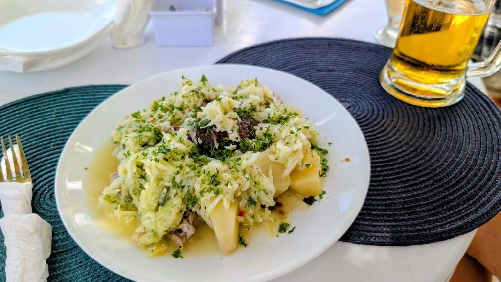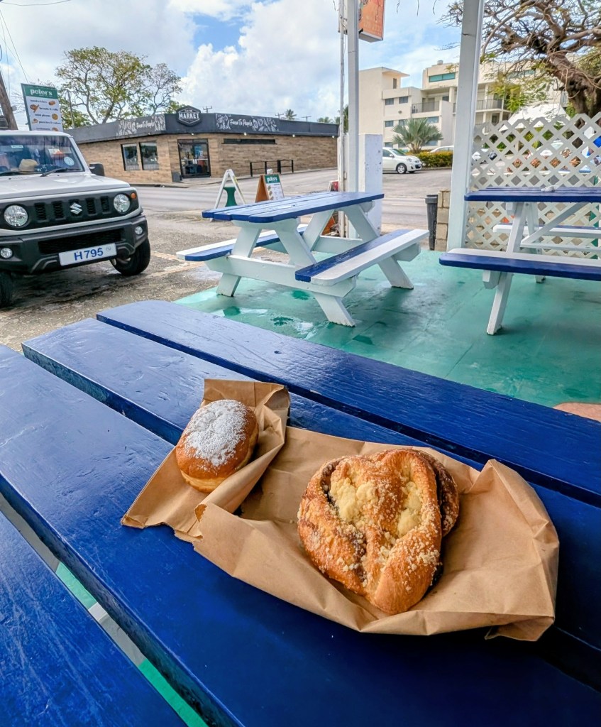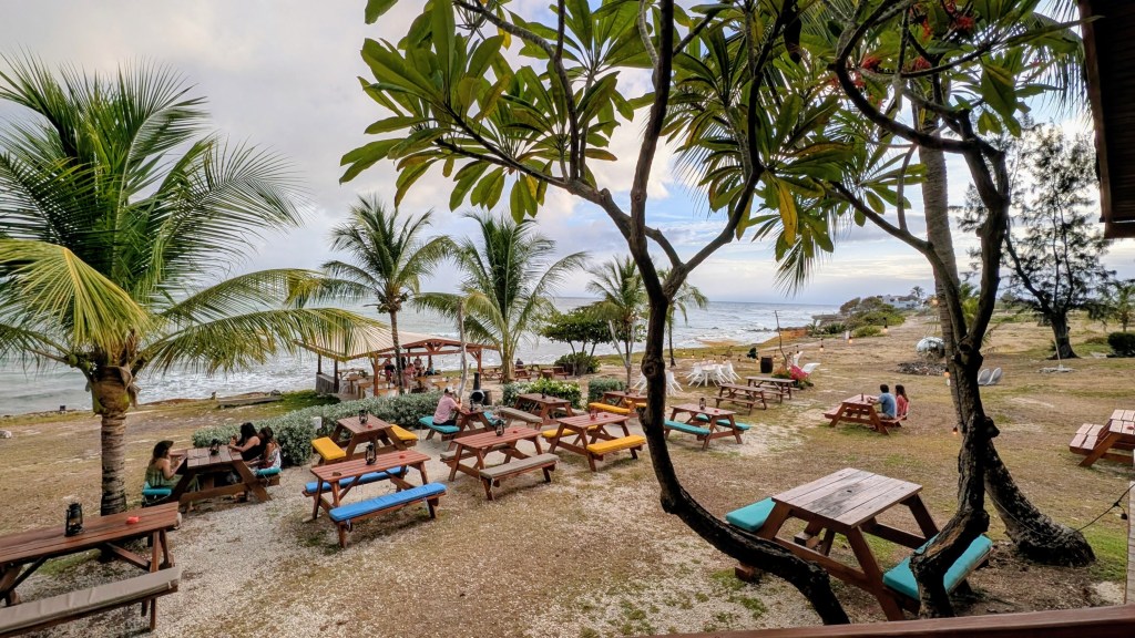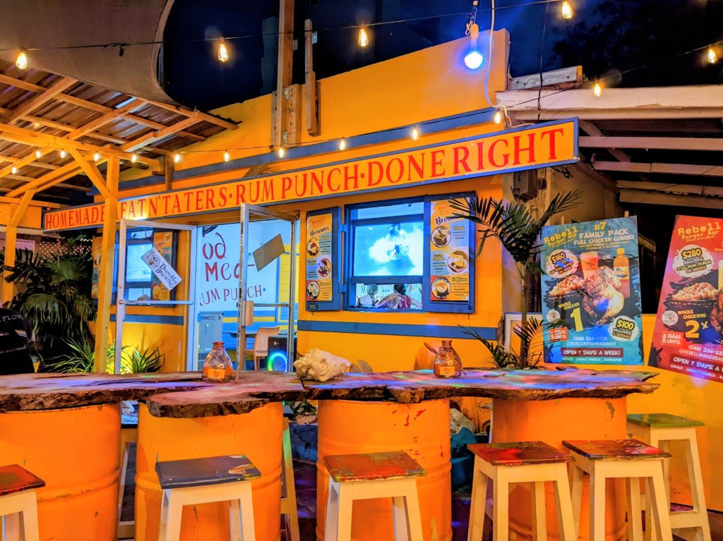 - Quick Review: Located on Welches Beach in the Oistins area, Surfer’s Café is a full-service all-day dining restaurant with lovely views of the ocean in a laid-back casual atmosphere. They offer some more Bajan inspired things, like fish cakes and buljol, alongside some general pub style things. We really like the fish tacos! Service can be extremely slow at times. We are not sure if they changed the cook, but the fish tacos were noticeably much better during our last meal in April 2025 compared to previous meals.