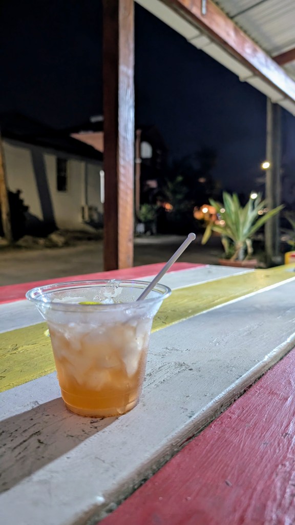 - Quick Review: Joan’s Rum Bar is a small local rum shop where locals and tourists enjoy a few drinks inside or at a picnic table outside. The rum punch was very good! Winnie is very cute and make sure to say hi!