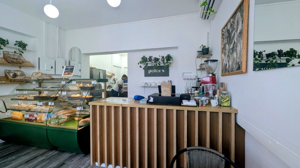 - Quick Review: Peter’s Bakery is a small shop with limited outdoor seating that serves up coffees (iced/cold), baked goods like donuts and cookies, and some sandwiches.