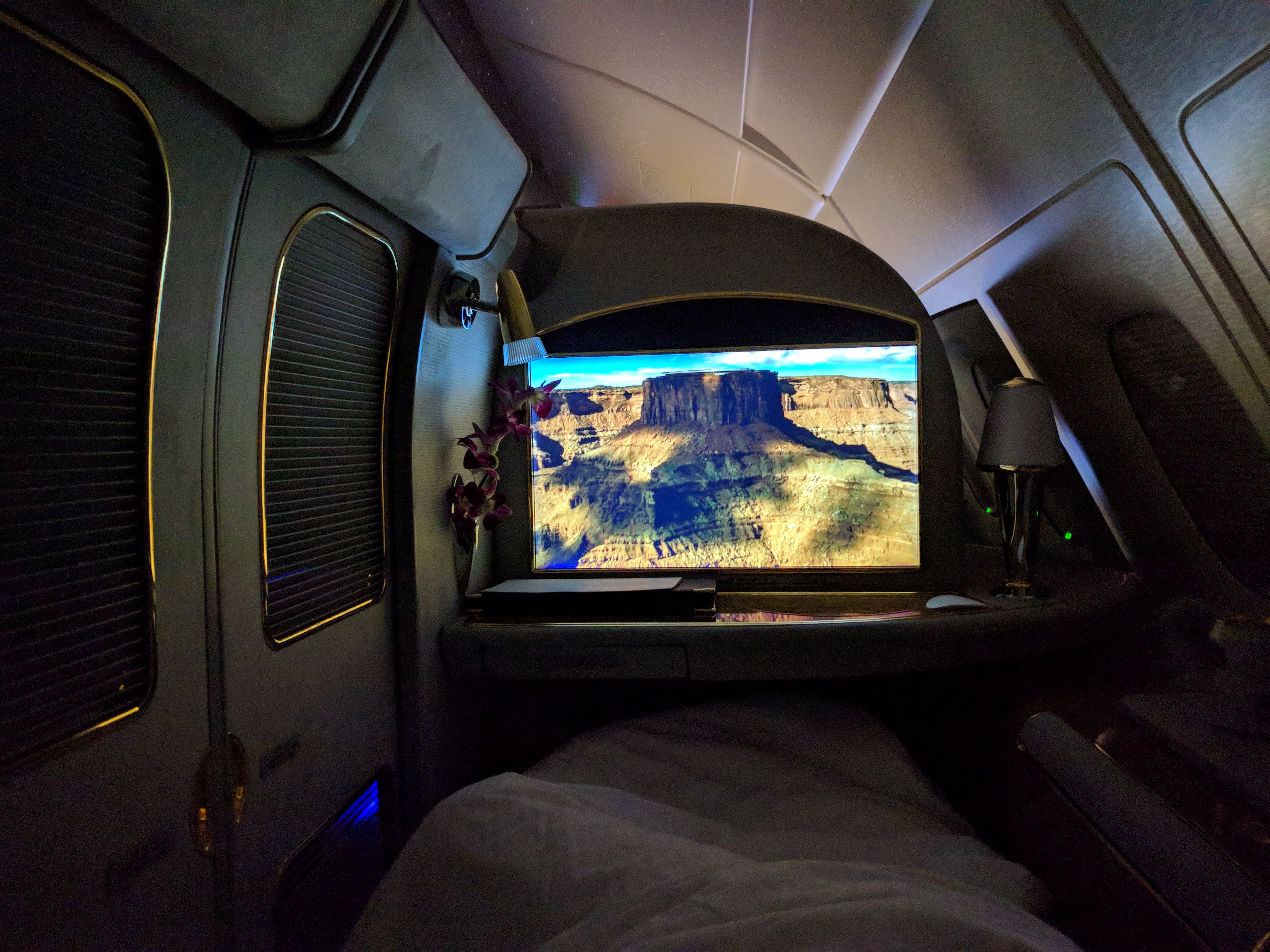 Suite closed up and bed made for sleeping