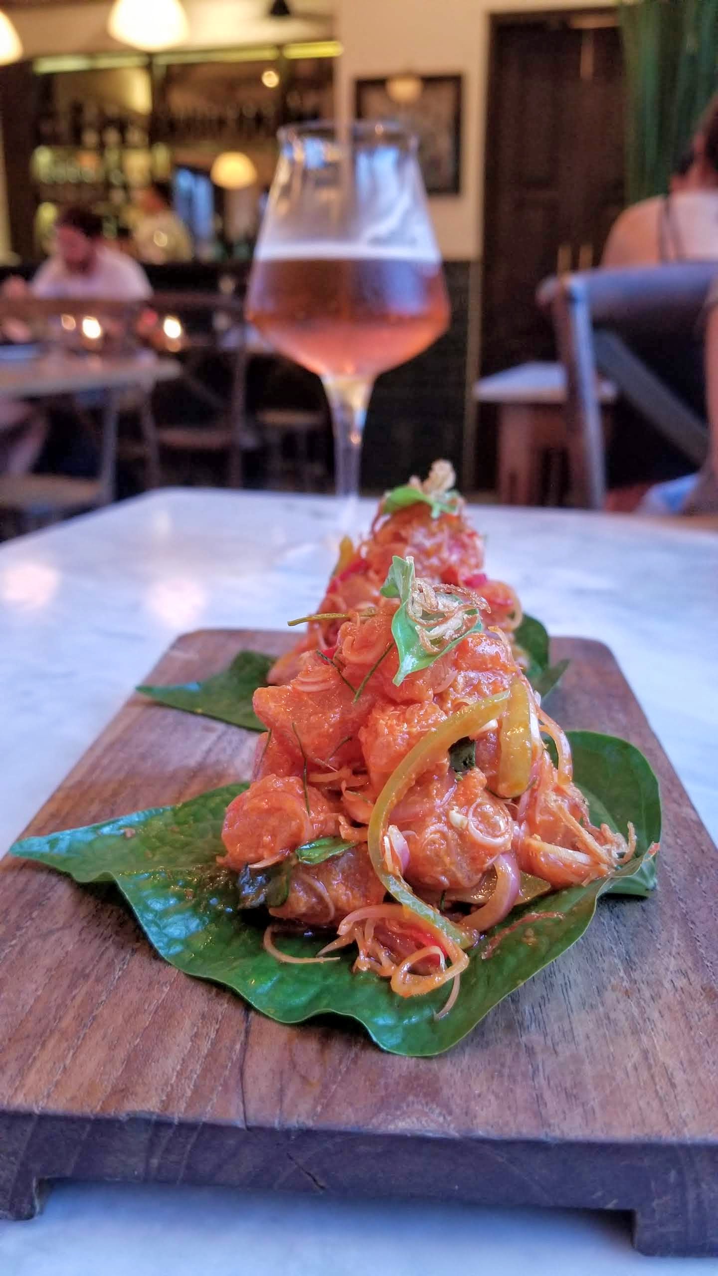 - Tuna betel leaf with lemongrass green tomato sambal matah and bumbu pasih