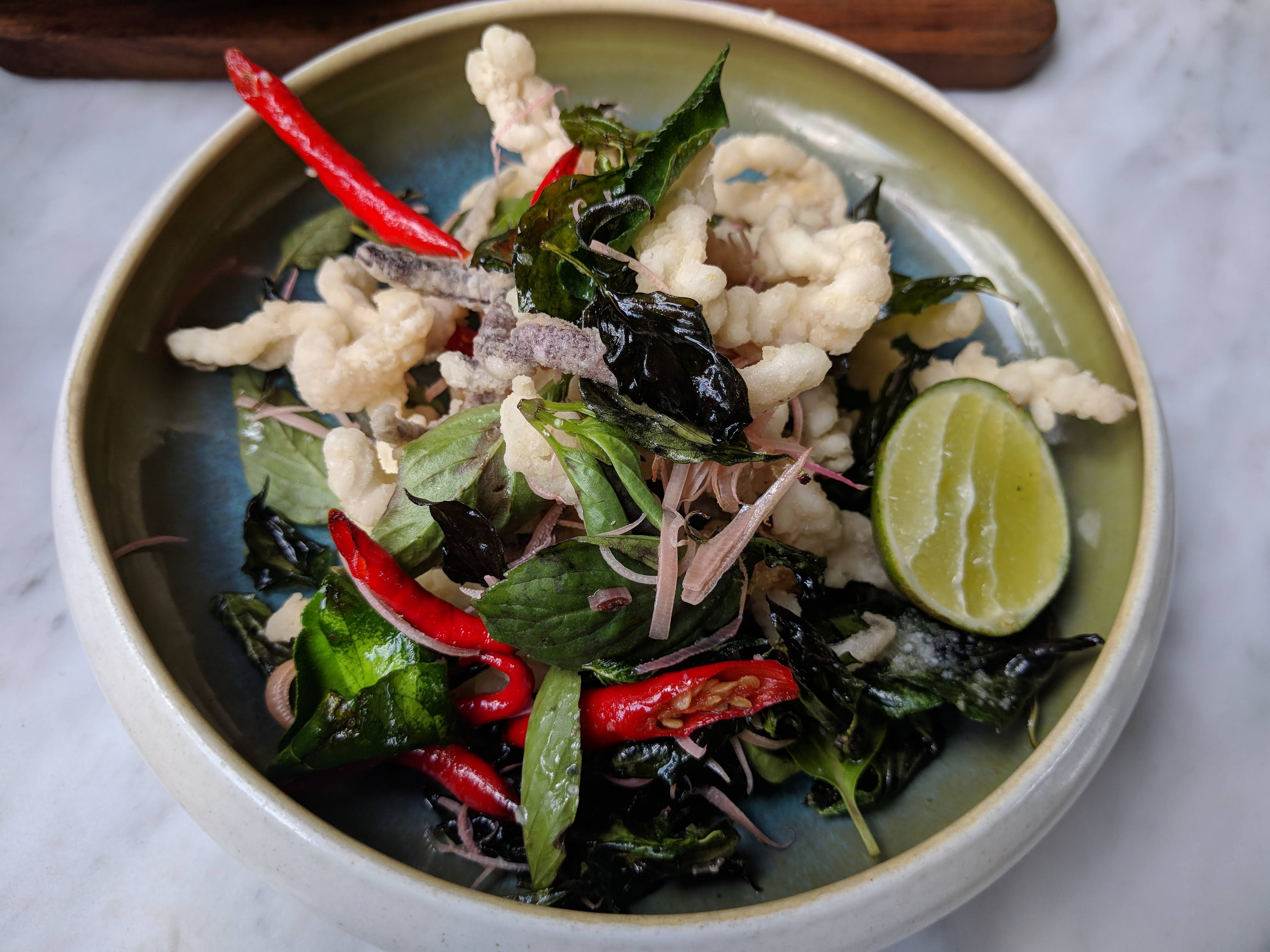 - Crispy squid with chili jam ginger flower lemongrass