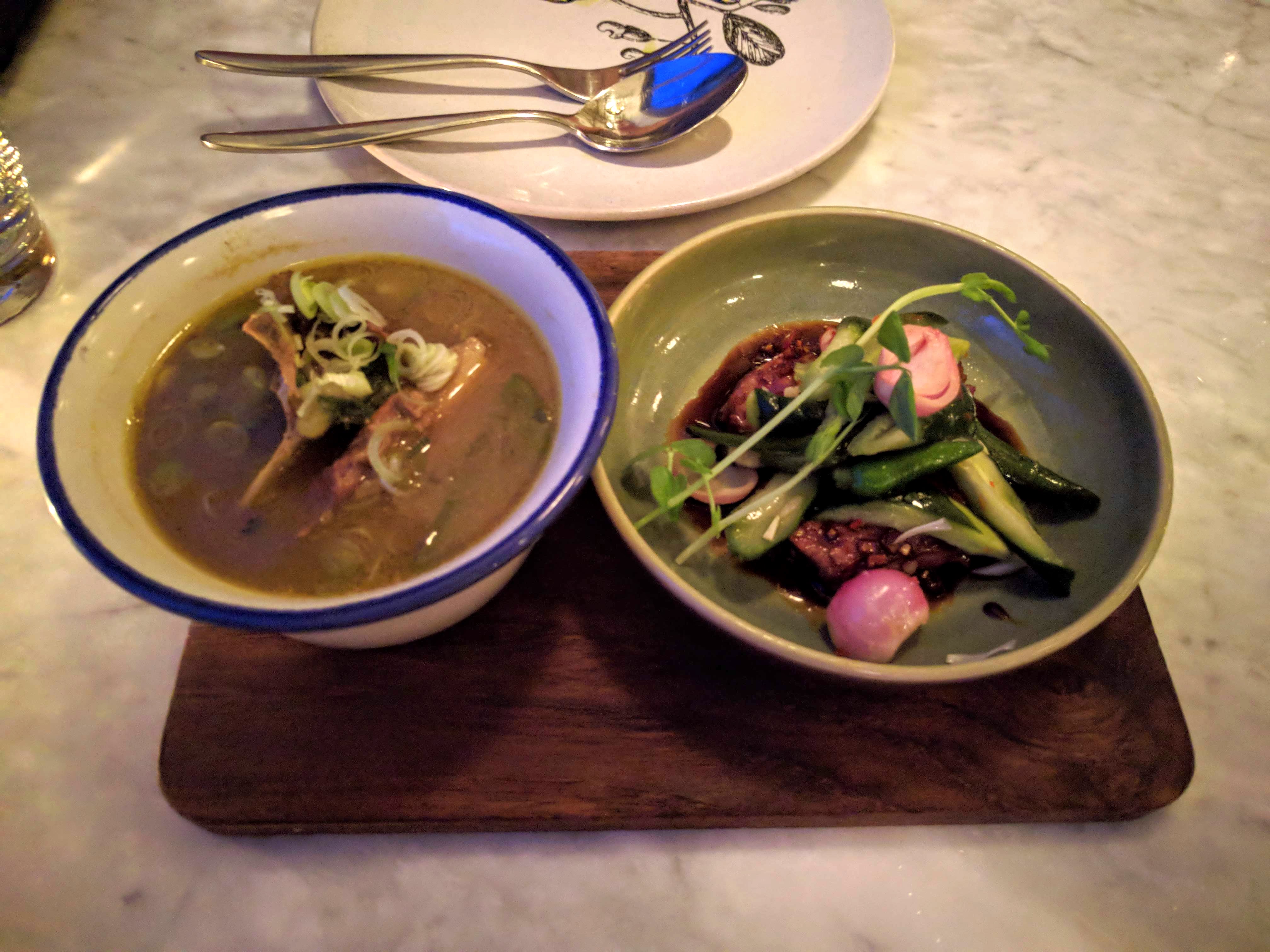 Sadly, the rest of the meal went downhill; the pork didn’t have much flavour and the sambals were way too spicy for us to eat (we love spicy food and have a decent threshold and can appreciate making the sambals authentic but it was inedible for us). In order to help with the spice, we were offered a tea that was delicious and very unique. They also offered us some sweets at the end of the meal; in season lychee fruit that wasn’t peeled which it awkward and delicious tamarind candies. We enjoyed all the complimentary offerings more than the meal which salvaged the experienced for us. We are including Nusantara in this list because we did enjoy the meal even if we were disappointed overall but we would go back and try to order different dishes.