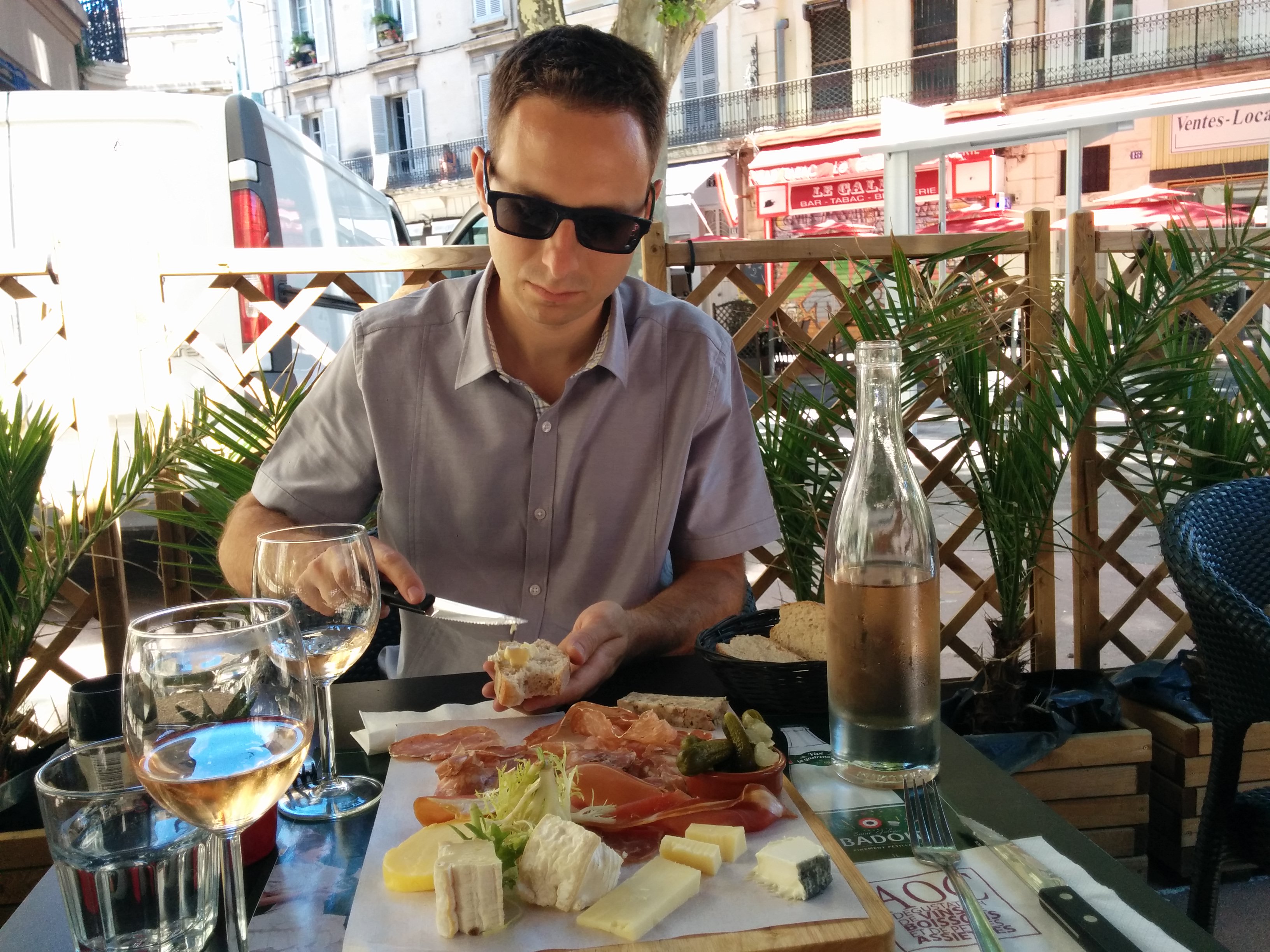 Jason enjoying lunch and rose wine in Avignon