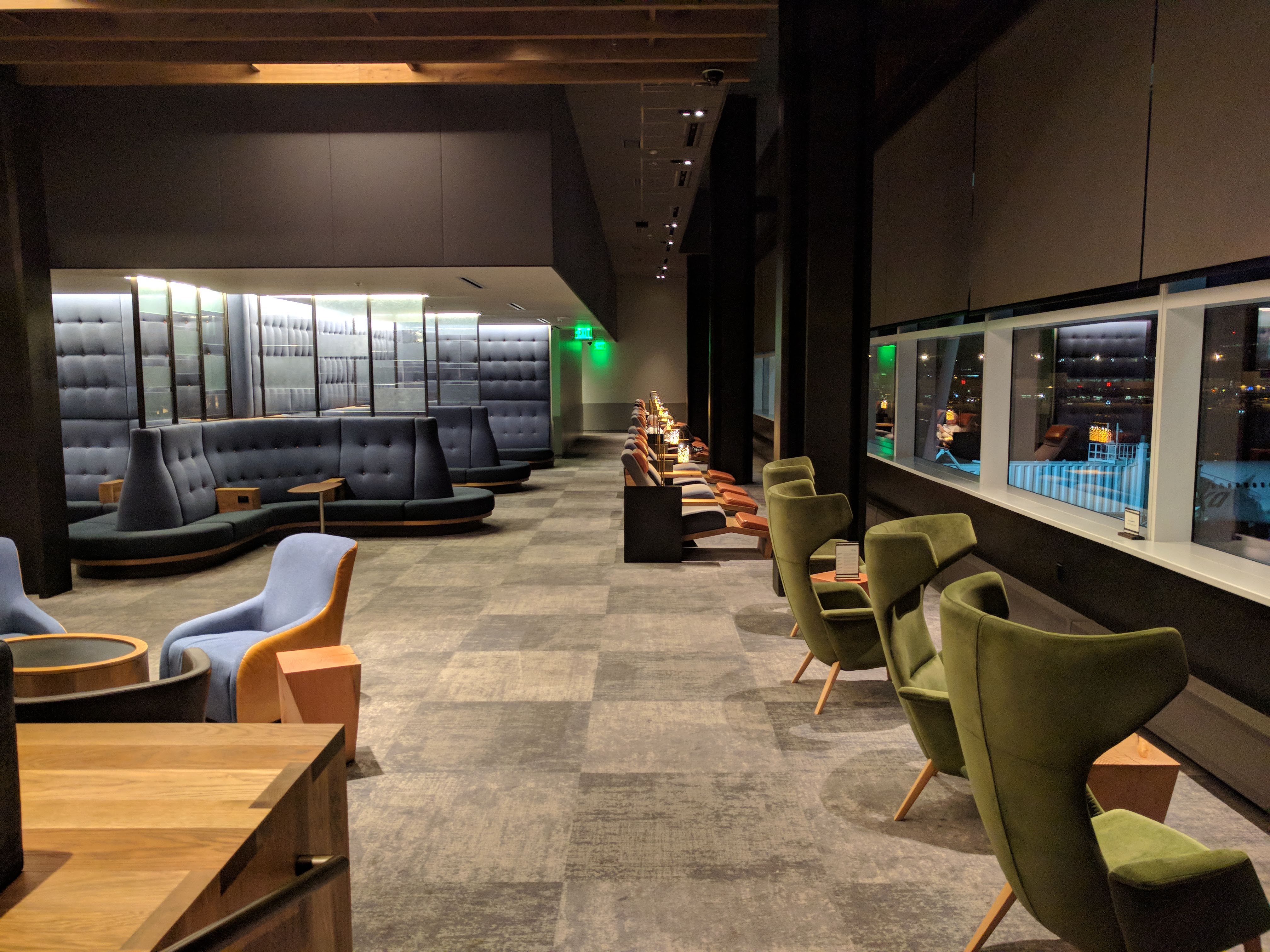 The new Alaska Airlines Lounge is located in the North Satellite Terminal. To get here, you need to go through TSA security screening at the main terminal. Once you have gone through security, you take a train to the North Satellite Terminal (N-Gates).