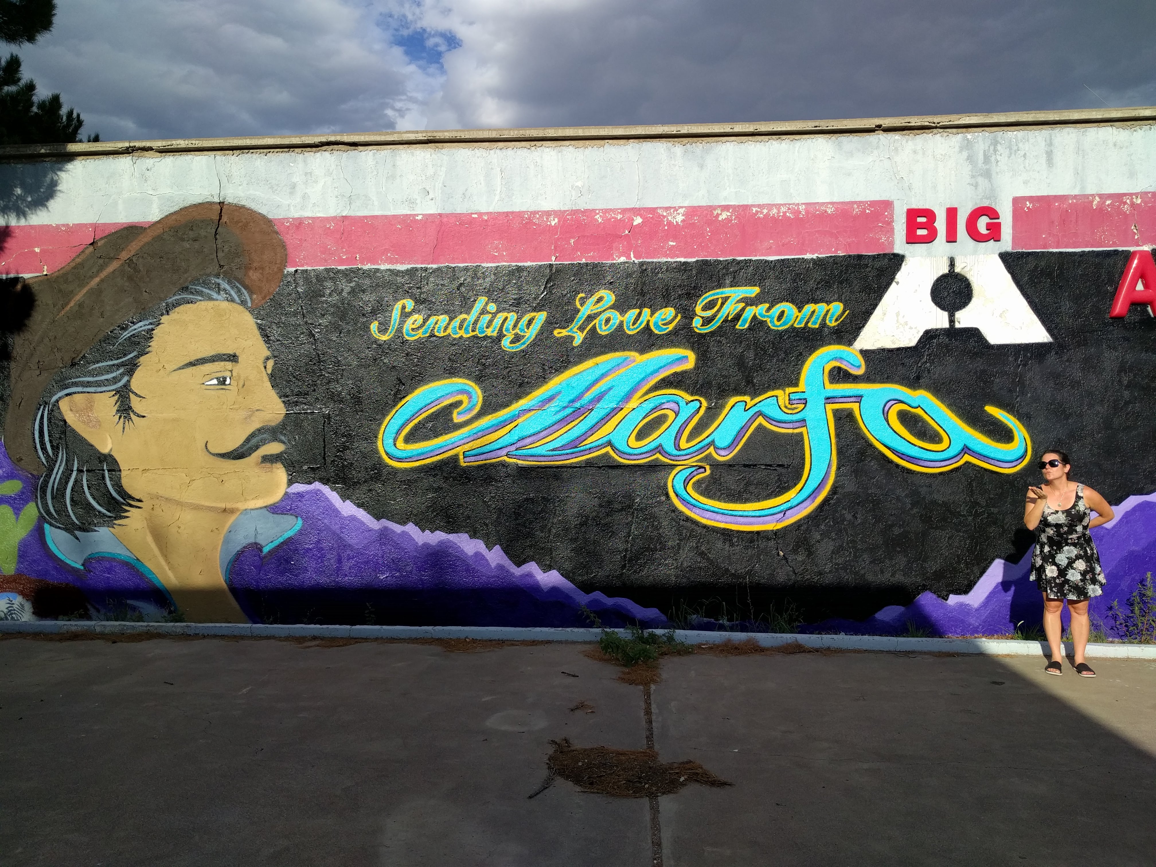 Max and a mural in Marfa
