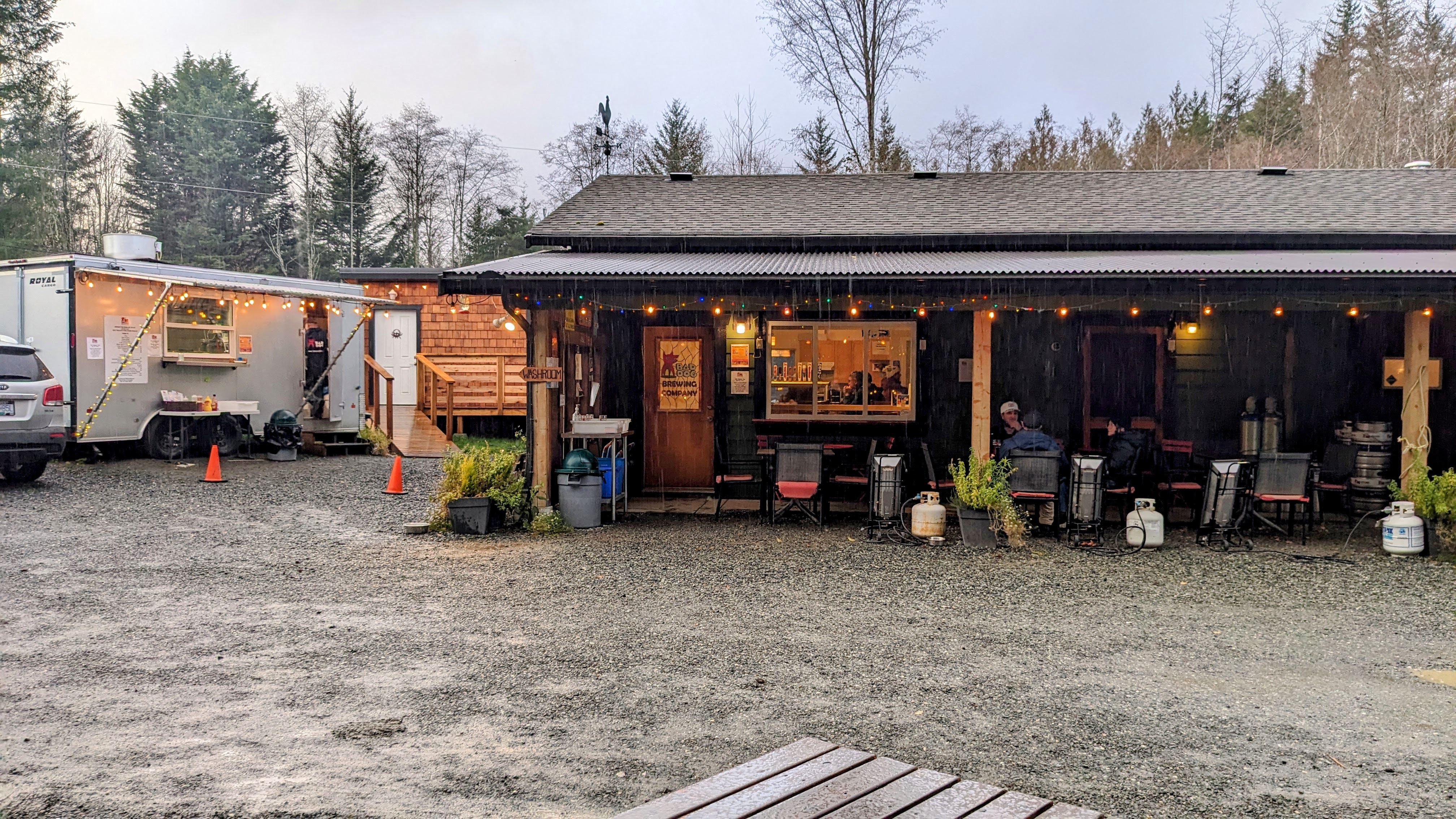 - Bad Dog Brewing: This is a small spot located in a rural area of Sooke. It definitely feels like a local spot but everyone feels welcome, including your furry friends! They have a small food truck on site that serves up things like burgers, onion rings, fries, etc.