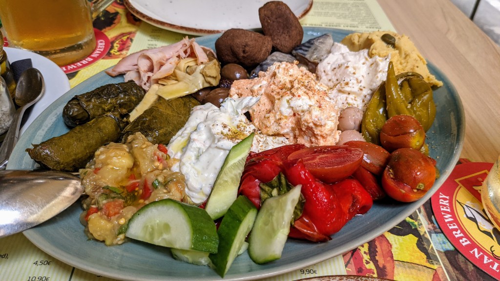 - Cretan Brewery: Cretan Brewery is the oldest brewery on the island and they supply kegs to many restaurants and bars on the island. We stopped in for a pint and a snack but you can also do a tour of the facility here near Chania. They offer a few staple beers like a lager and a pale ale as well as seasonals. It is easy to find their beer on draft at many restaurants and bars as well as for purchase in stores. They also fill bottles at the brewery for cheap!