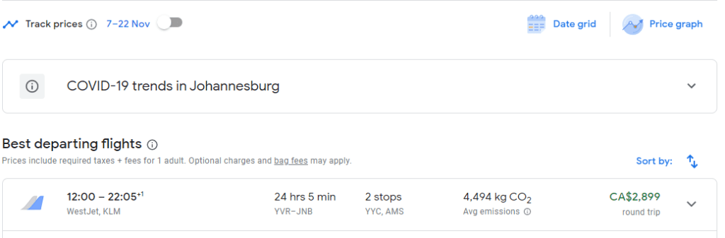 Other destinations with deals are from YVR – Vancouver to South Africa, both Cape Town and Johannesburg.