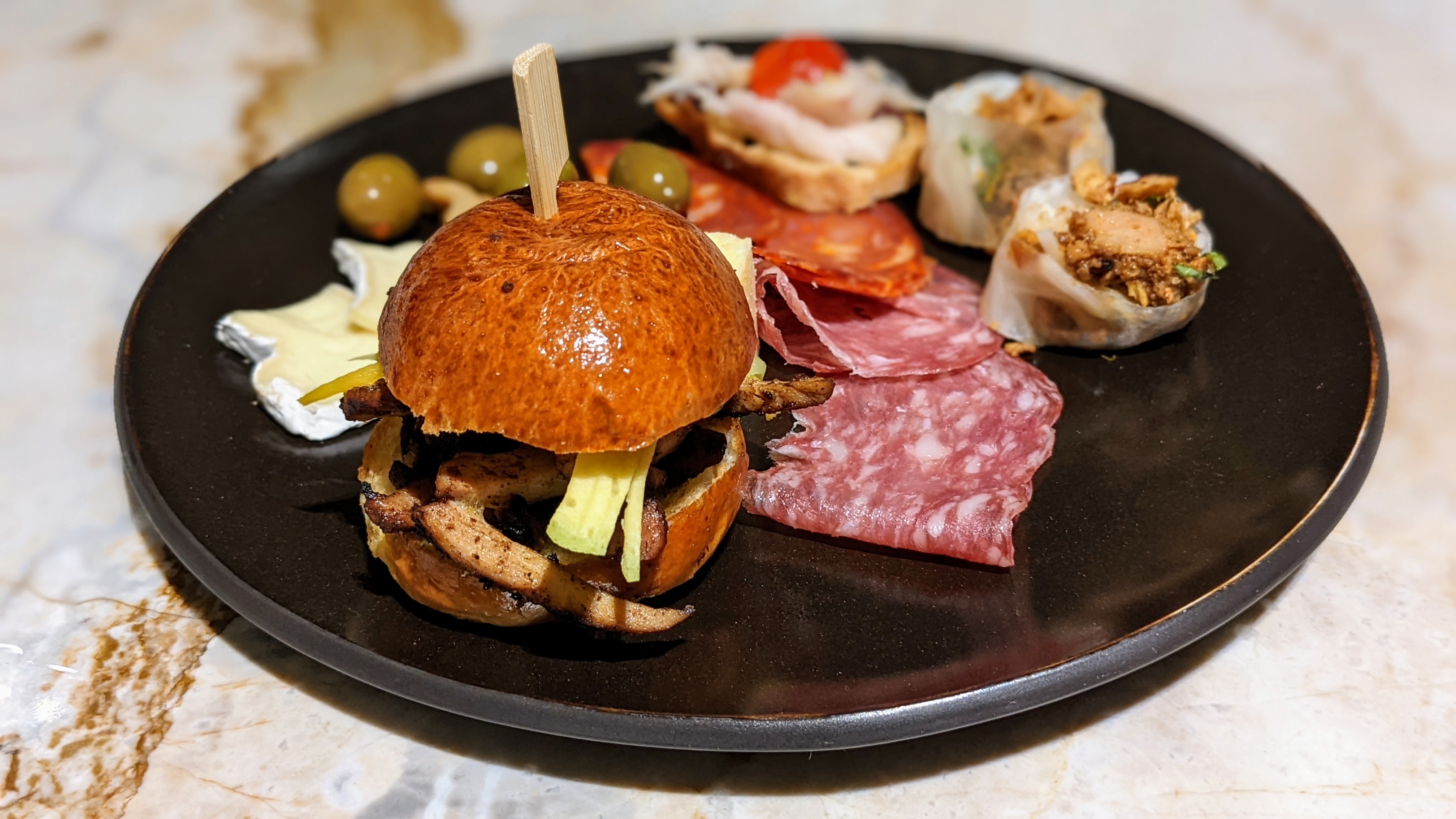 The buffet options were also great and we wish we could have eaten more to try everything; cheese, olives, charcuterie, sliders and sandwiches (jerk chicken), along with unique items like laksa.