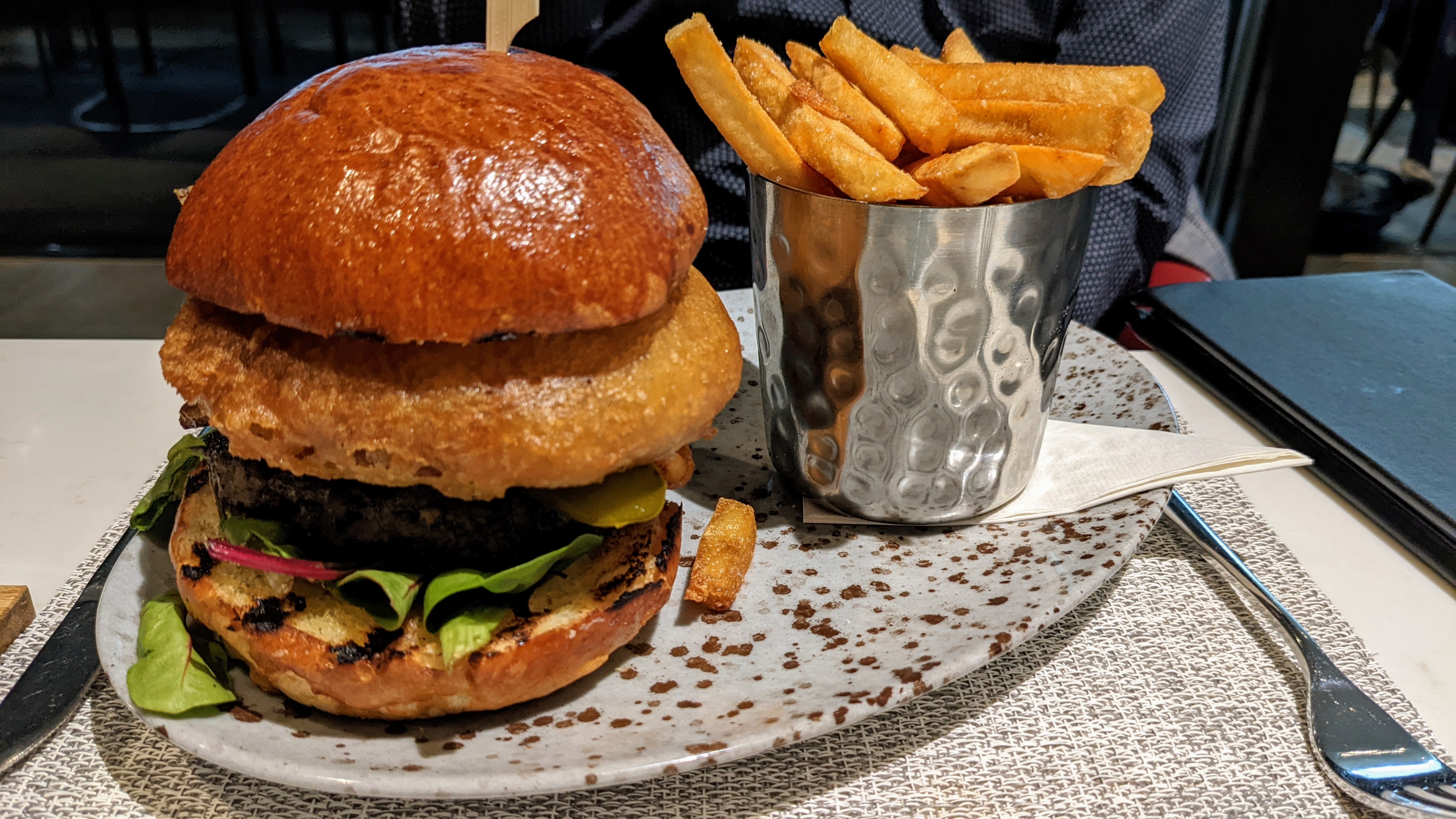 Overall, the food was delicious! We shared two appetizers, two mains and a dessert, making sure to save some room for a few snacks from the additional buffet area. The burger is a must; best airport burger ever! They had two types of sparkling wine, cocktails, draft beer, and more. We had a glass of Moet Brut, Taittinger Rose, and eventually a Beau’s draft beer and a Dododimonti 2012 red wine. After the meal, we moved to a quieter area to relax.