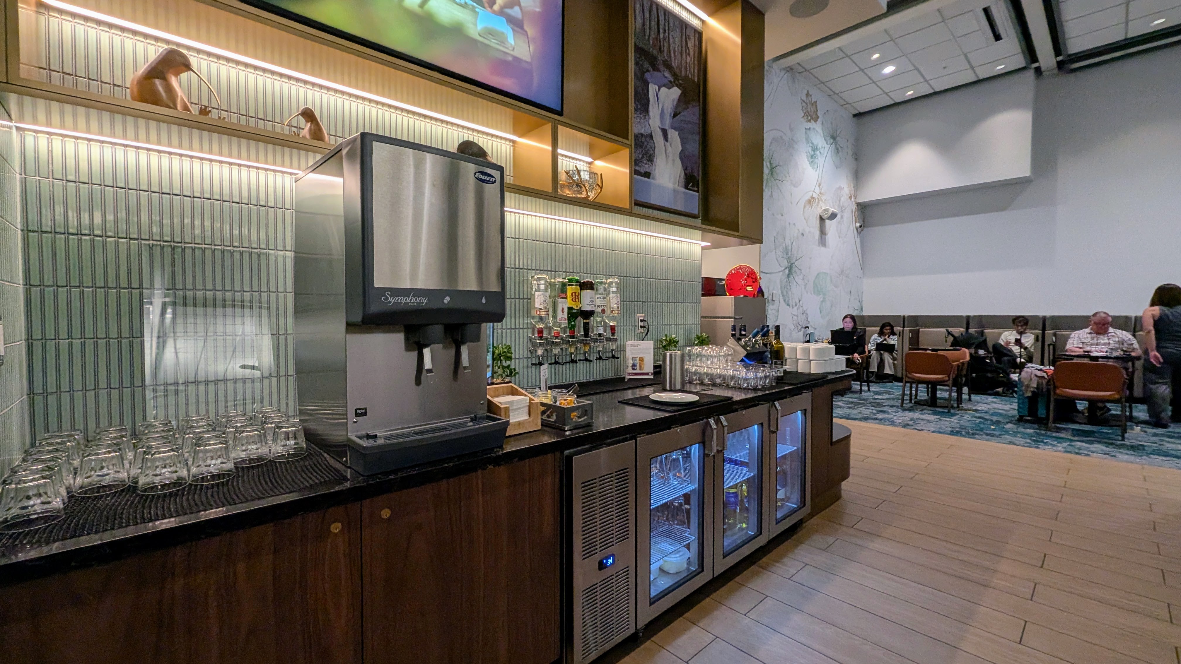 Note that this lounge is only accessible to passengers departing on flights to an International destination (departing from a Pier D gate).