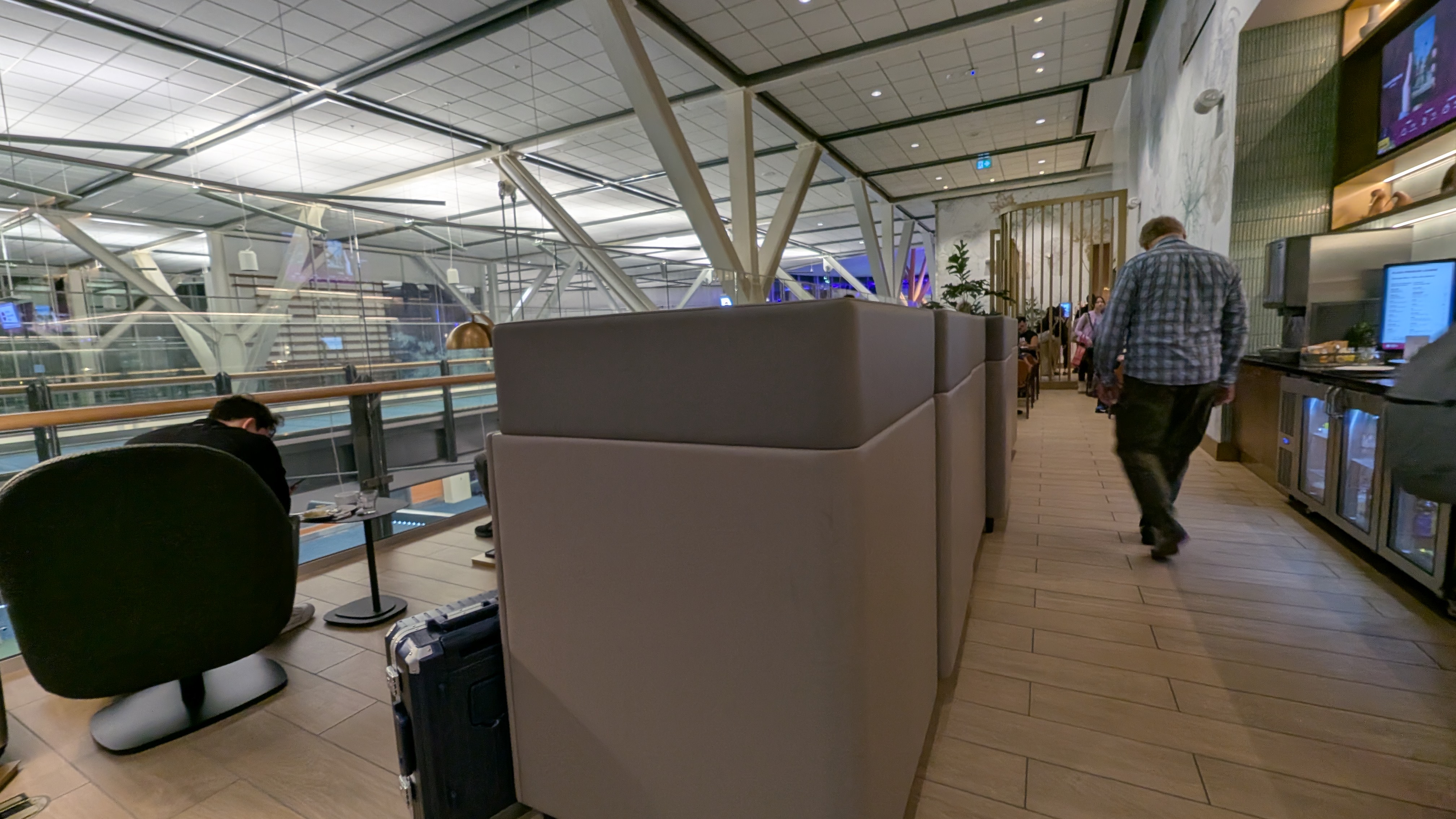 -The regular lounge space is still fairly small and feels cramped, with narrow access to move through the lounge from the entrance/exit and most seating to the food/beverage areas.