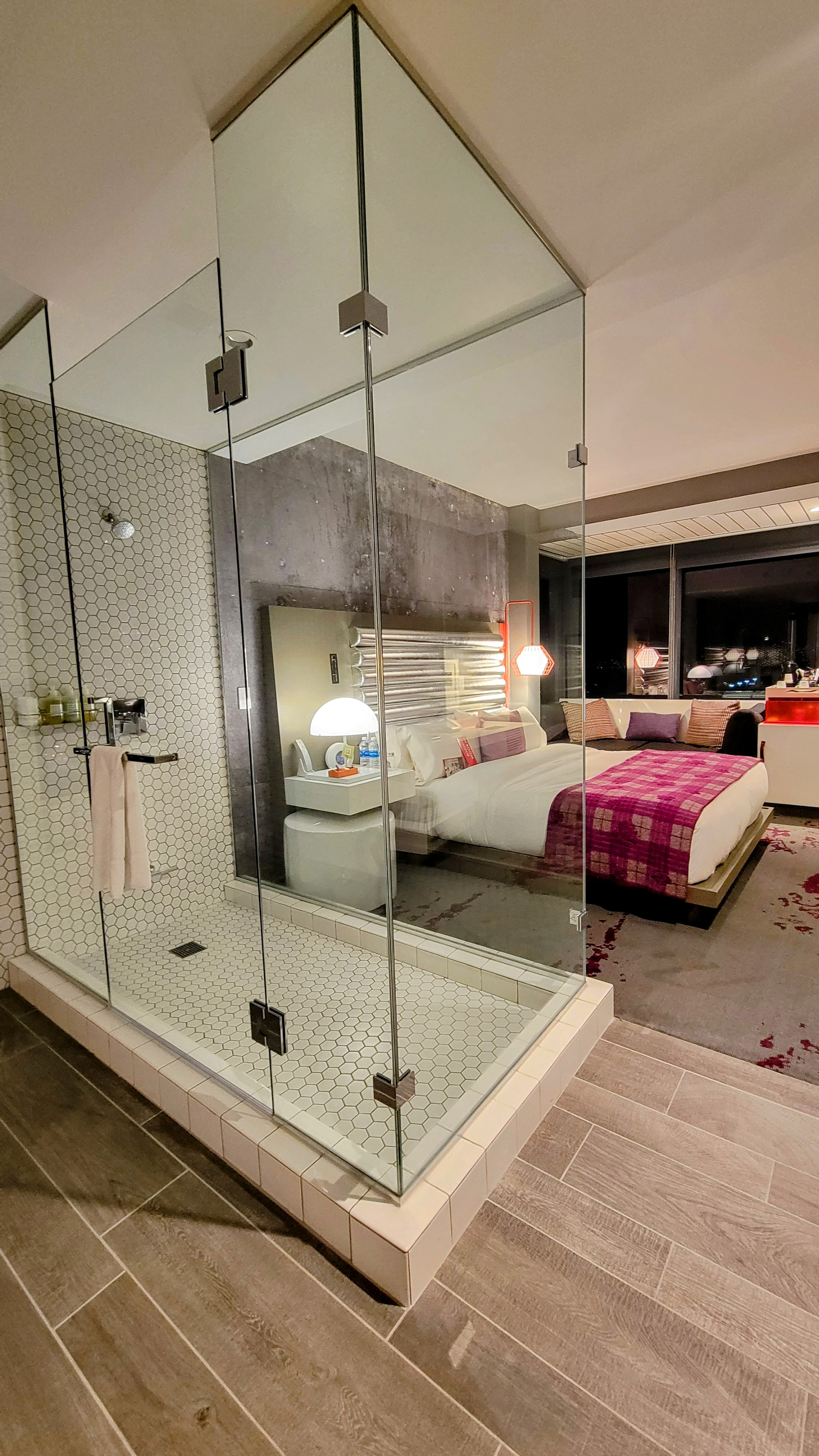 Room Design: 89 – Likely very polarizing to guests due to extremely open-concept design and fishbowl-like shower, which we thought was unique, spacious and stylish. Our corner room was also very bright.