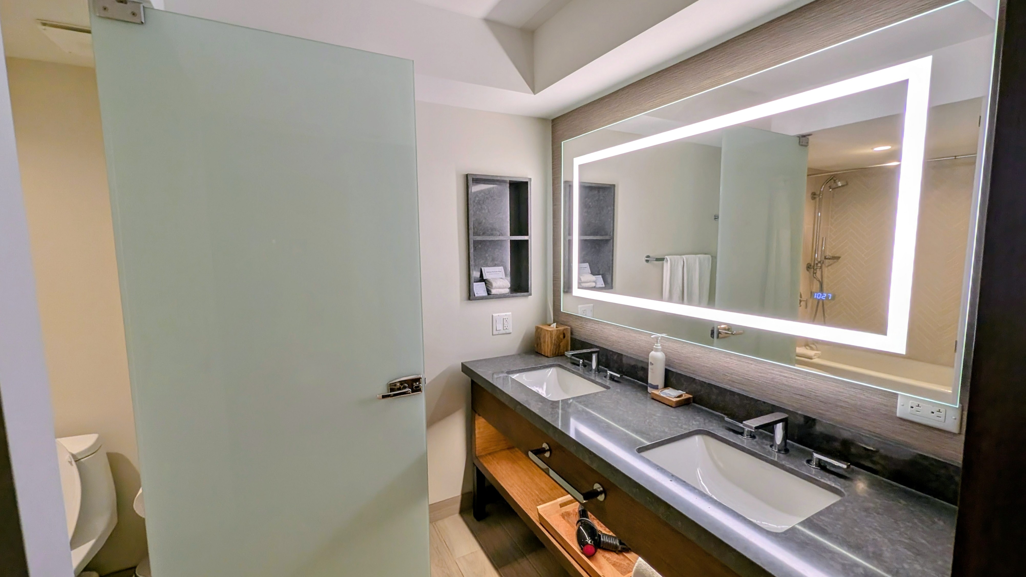 Room Amenities: 88 – Standard amenities include a mini-fridge, robes, refillable water bottles, a Keurig type coffee machine with mediocre coffee, and non-branded coconut mango toiletries.