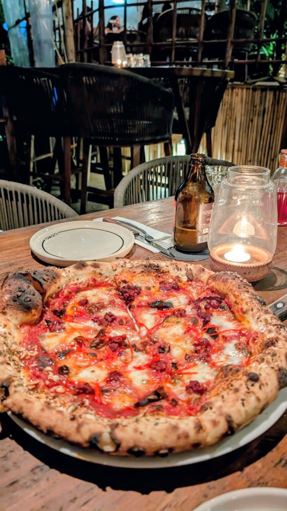 - Goan sausage is also very popular, and we decided it would be less blasphemous to have a pizza that at least had a local ingredient on it! We enjoyed Como Agua pizza nearby Vagator Beach.