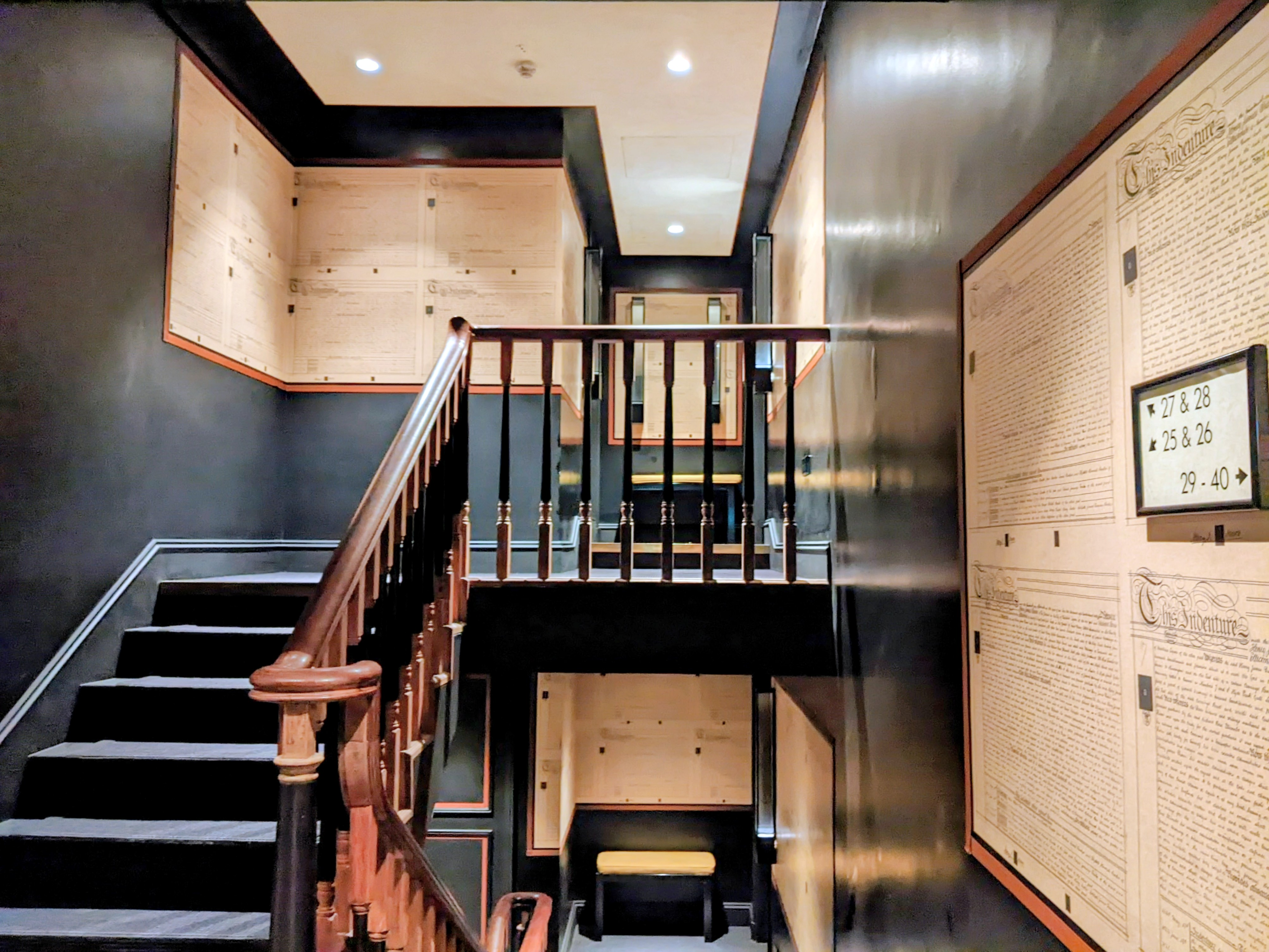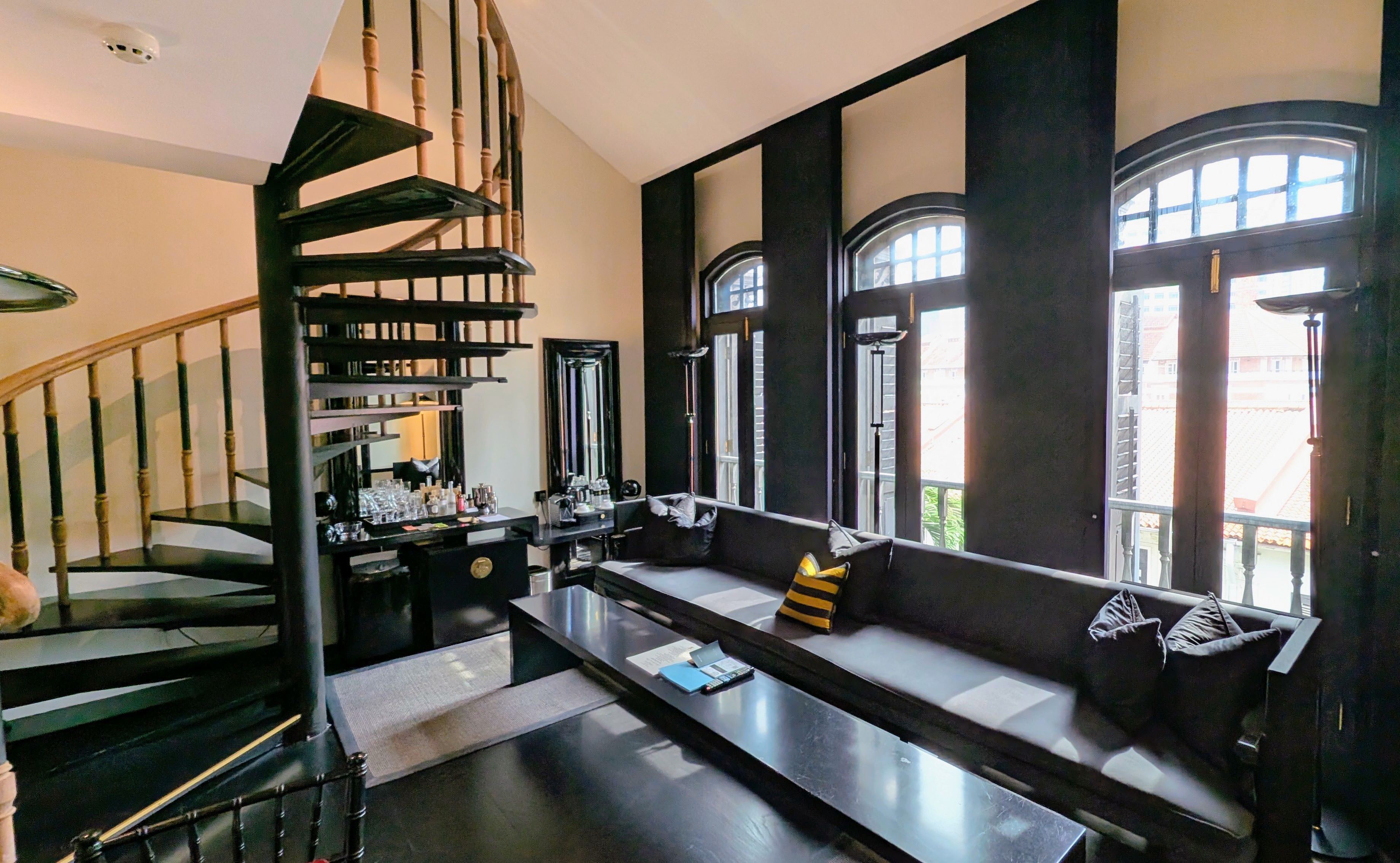 Room Design: 84 – Each room design here is unique and photos of other Duxton Duplex suites looks a little different. Our Duxton Duplex suite felt like a loft, with two levels; the ground level was a large living/lounge area and the upstairs had the bedroom, closet, and bathroom. The upper floor area felt a little dark and sparse compared to the lower level with more intricate design. The spiraling staircase added character, but this room type is not recommended for those with children or mobility issues.