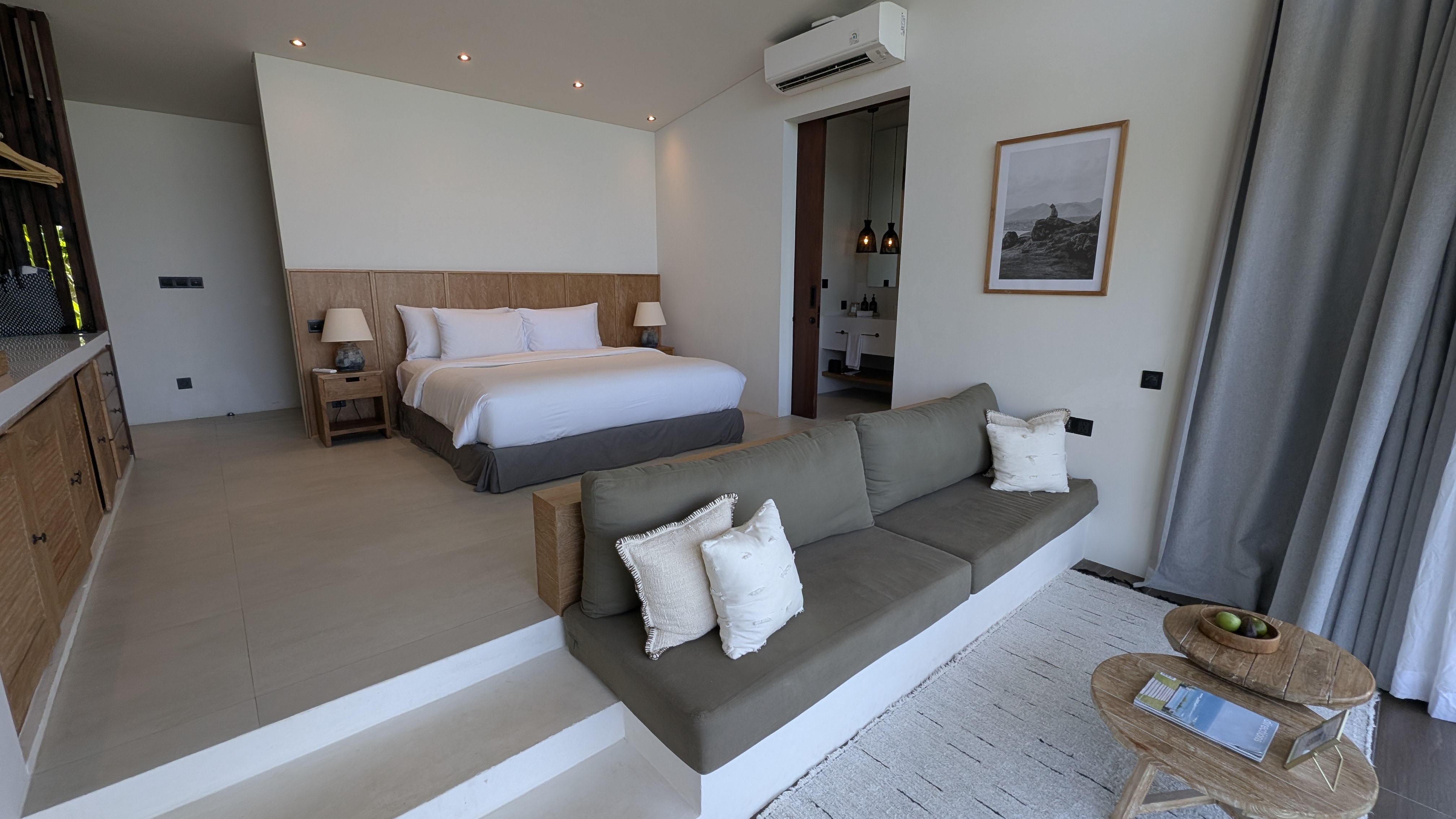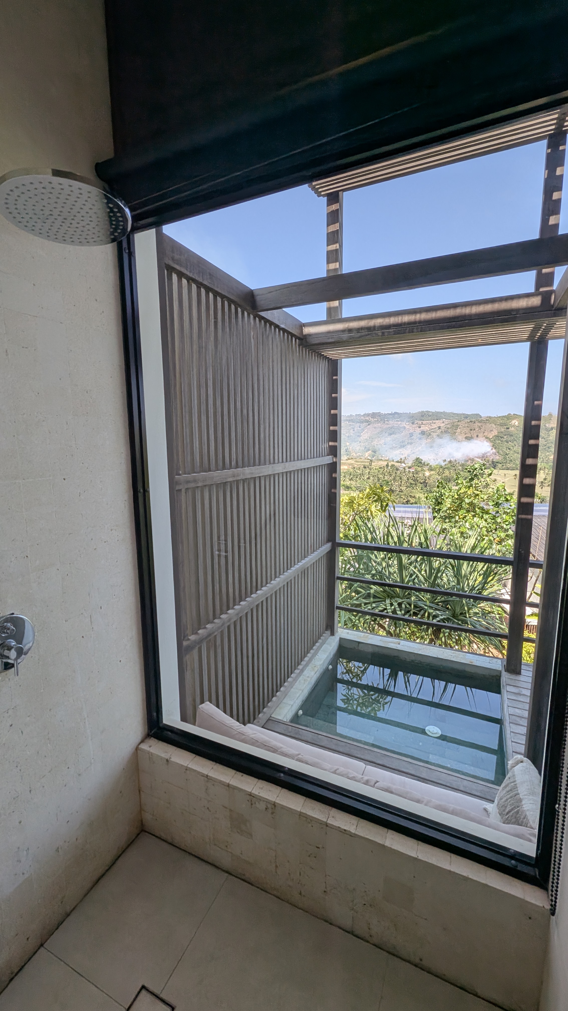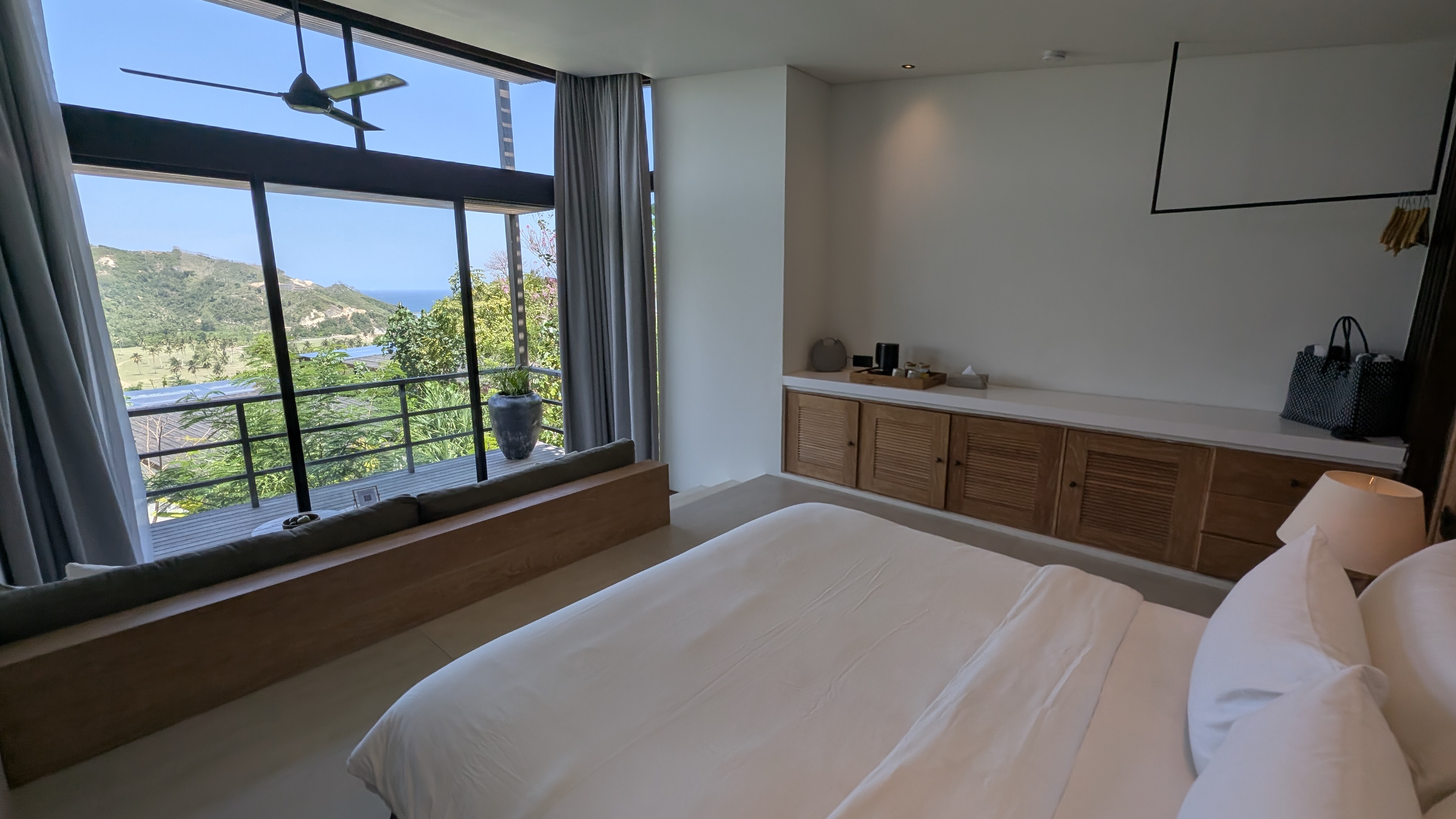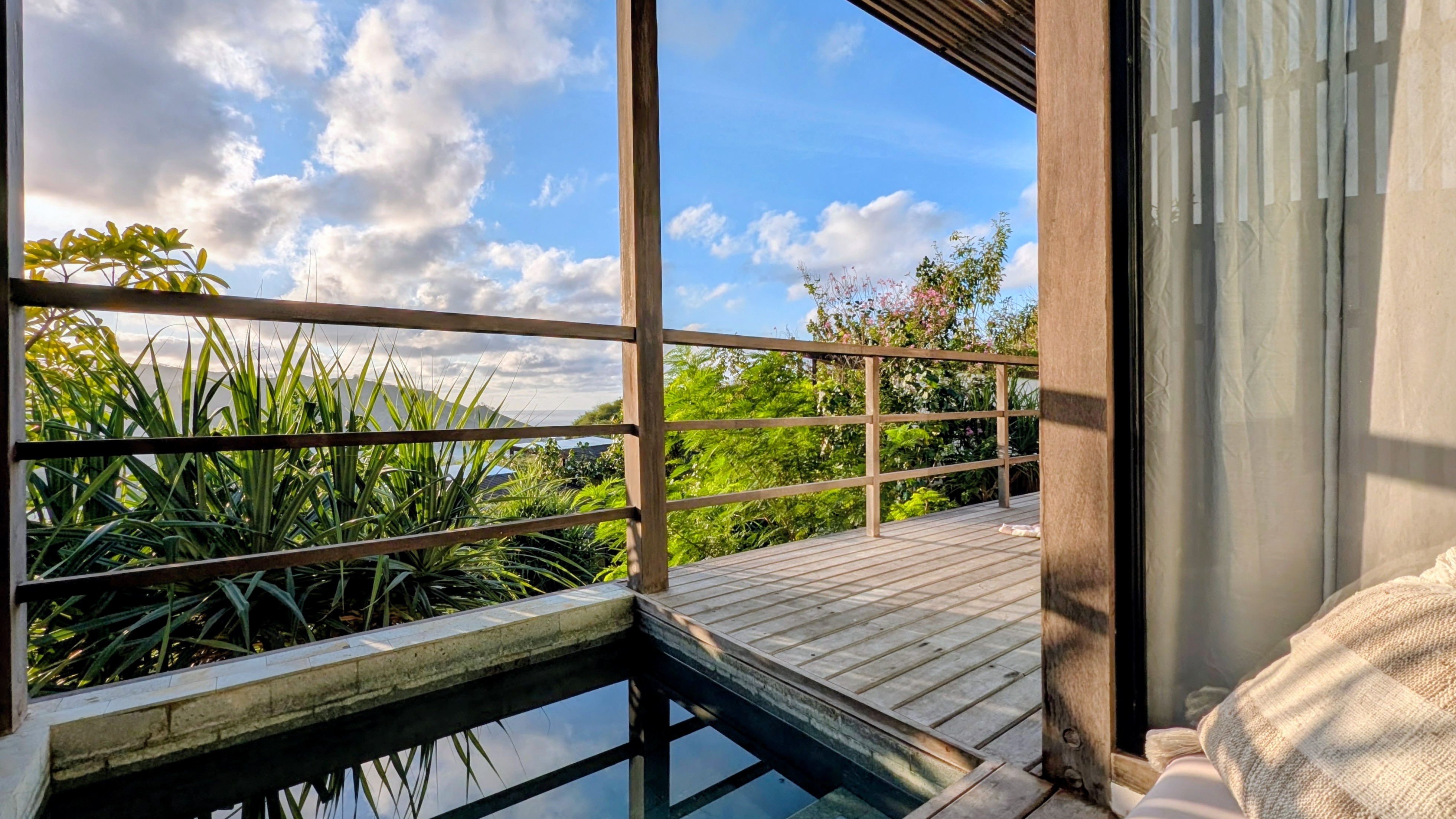 Room Design: 85 – A nice private space overall, with some minor drawbacks such as limited coastline views, cooling issues and some unfortunate gaps to let the creepy crawlers in. There is no furniture on the balcony other than the little bench behind the small plunge pool.