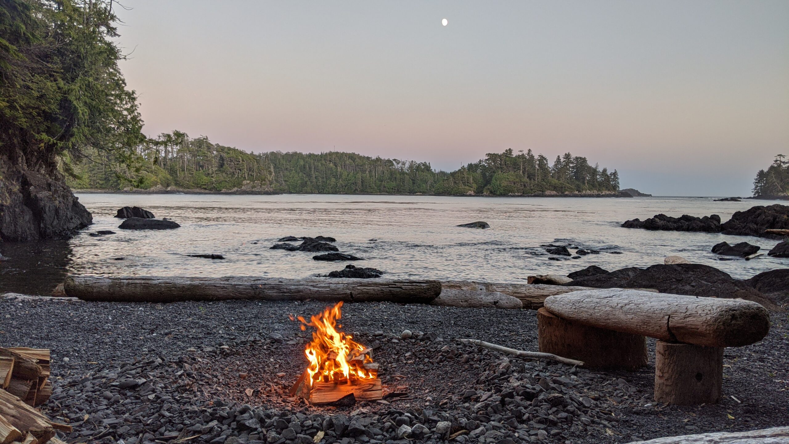 Enjoying a campfire at A Snug Harbour Inn in Ucluelet